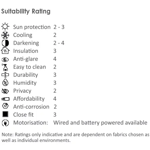 All components are manufactured using aluminium and glass reinforced nylon which will not corrode under normal circumstance. The system hascbeen designed for smooth operation, together with rigidity to prolong the window blind’s working life.