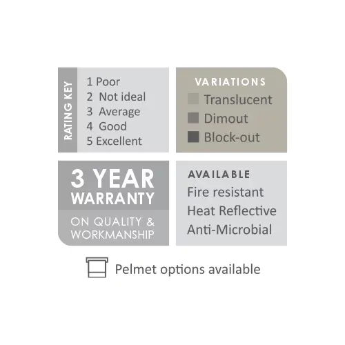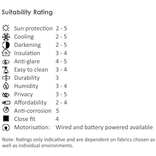 - Light Control:Â Available in fine sheer to total blackout roller fabrics which gives the option of creating the perfect atmosphere within an area.